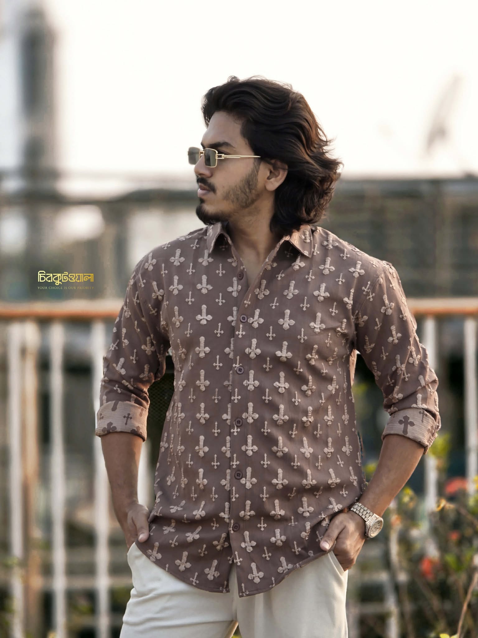 China Luxury Jacquard Shirt 01 Colour (Brown)