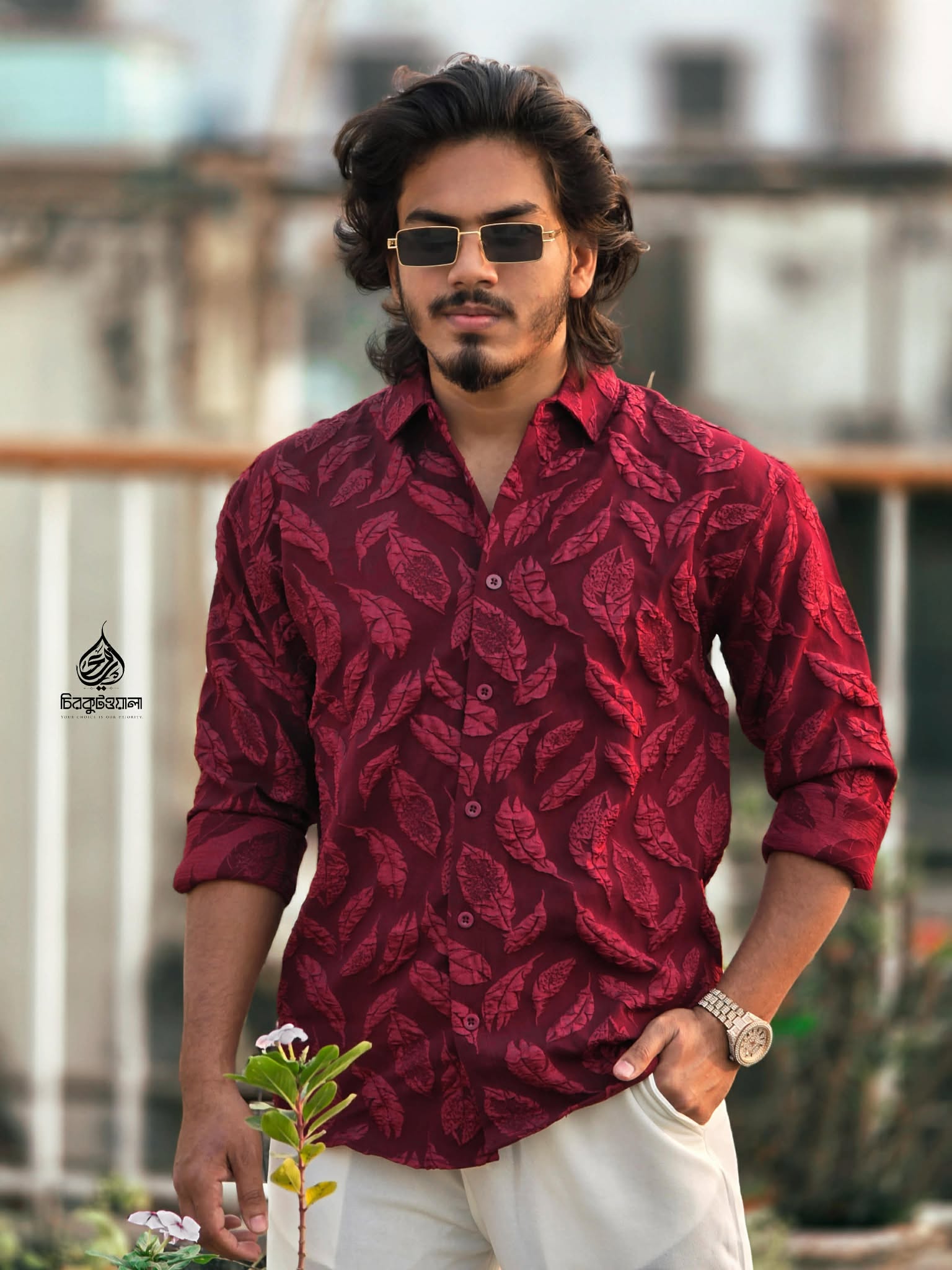 China Luxury Jacquard Shirt 03 Colour (maroon)