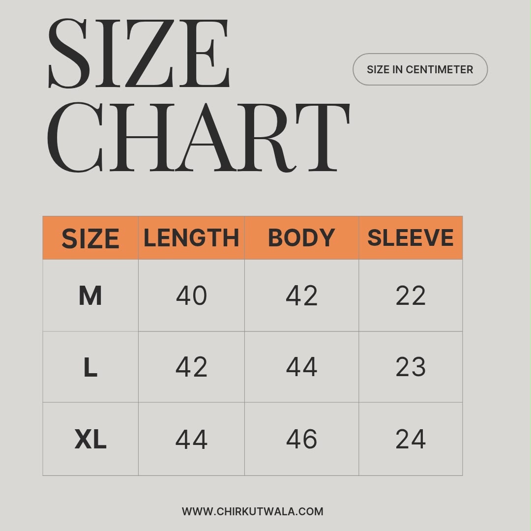 XL – Length 44 | Body 46 | Sleeve 24