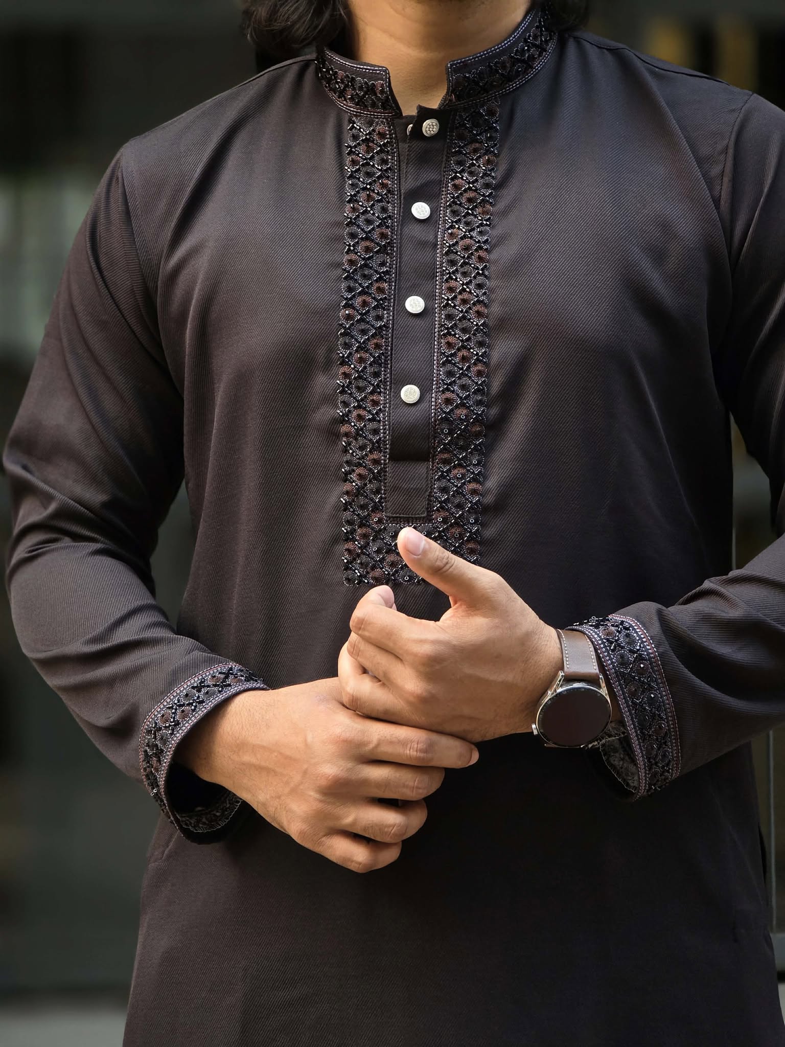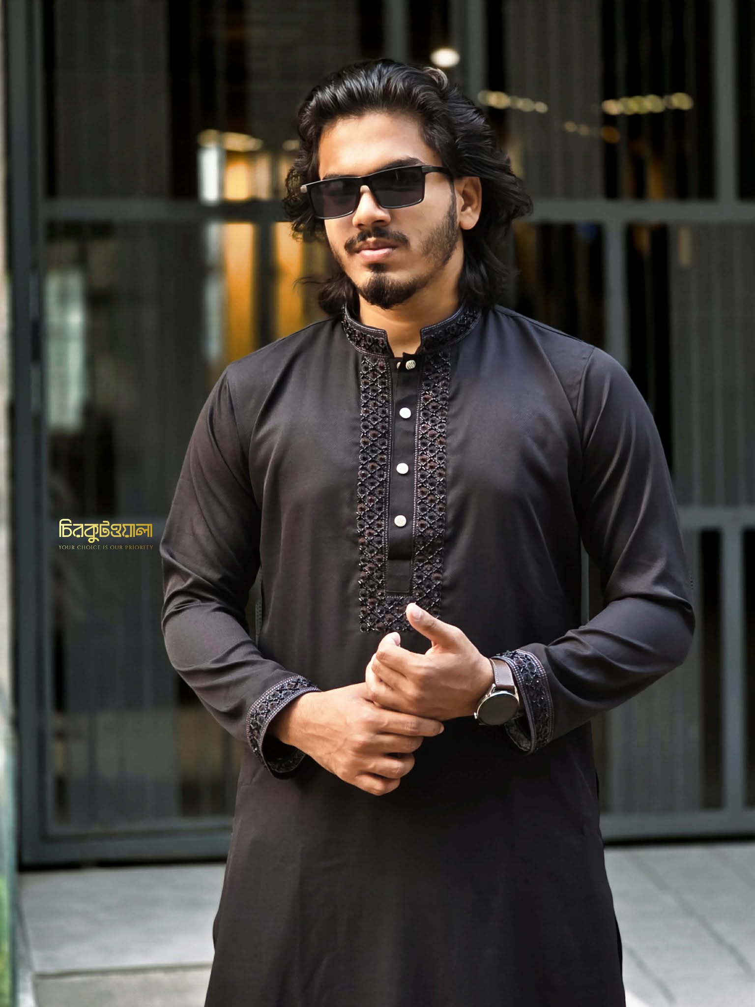 Premium Karchupi Handcrafted Panjabi Colour (Black)